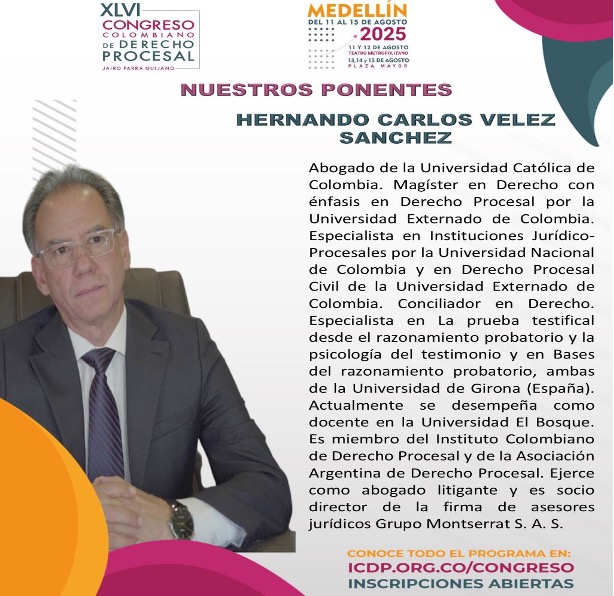 Resumen ponencia “Segunda instancia para todos: una deuda pendiente con la justicia” conferencia dada en el XLVI Congreso Colombiano de Derecho Procesal, agosto 2025, por Hernando Carlos Velez: La ponencia plantea una crítica a la regulación de la única instancia en algunos procesos del Código General del Proceso, por considerar que vulnera derechos fundamentales como el debido proceso, la doble instancia y el principio de igualdad. Aunque el legislador lo ha justificado por razones de eficiencia y descongestión, esta configuración procesal resulta desproporcionada y contraria a compromisos convencionales asumidos por el Estado. Se advierte que afecta especialmente a sectores vulnerables, al negarles una garantía esencial de control judicial. En consecuencia, se subraya la necesidad de reforzar mecanismos de revisión para asegurar decisiones justas, legítimas y respetuosas del orden constitucional. La doble instancia constituye una garantía procesal indispensable para controlar eventuales estereotipos, prejuicios, sesgos o excesos del juez de primera instancia, asegurando un control judicial efectivo y reforzando la legitimidad y confianza ciudadana en la administración de justicia.